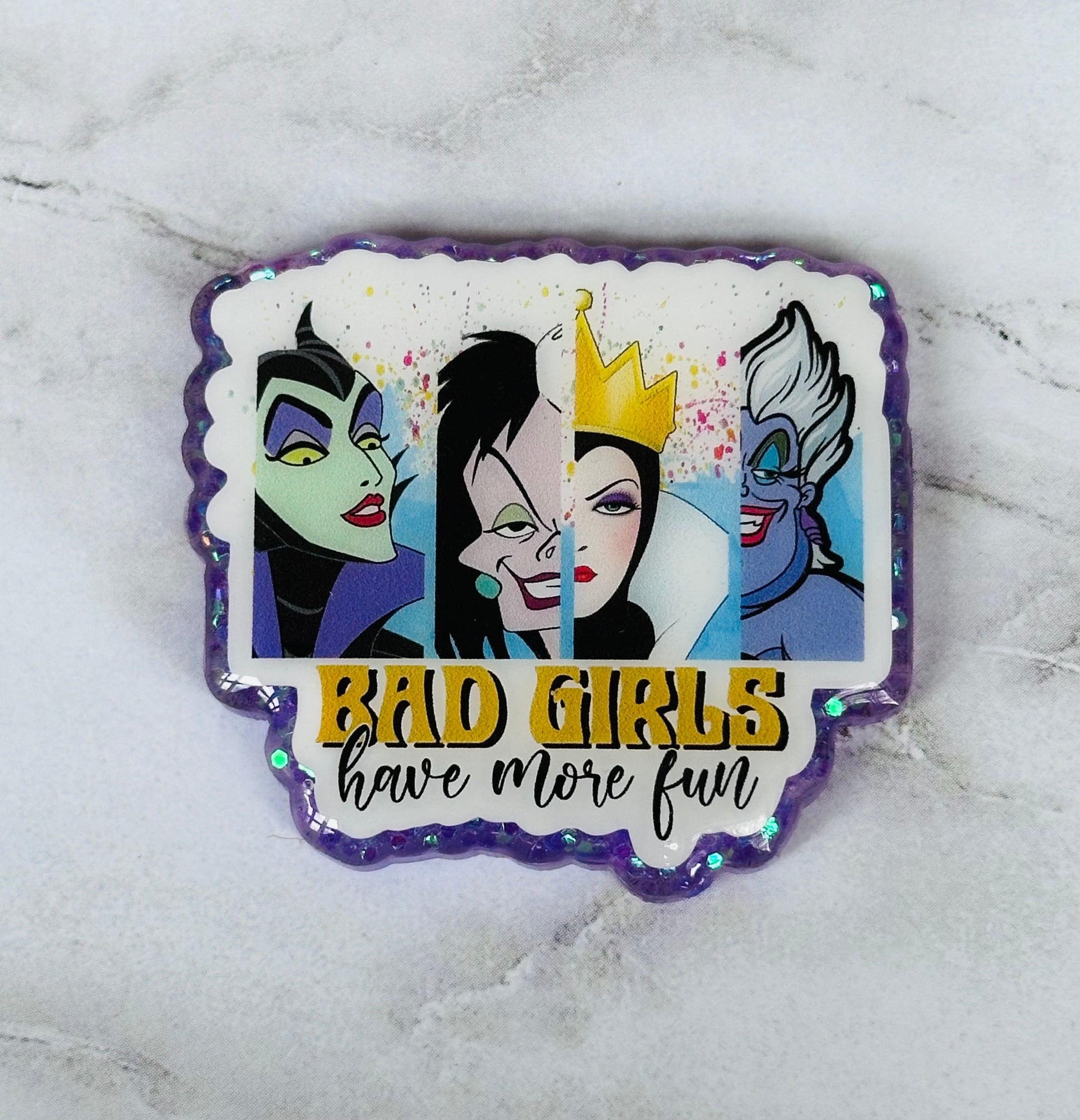 - Hand glittered and sealed with resin for added protection against wear and tear