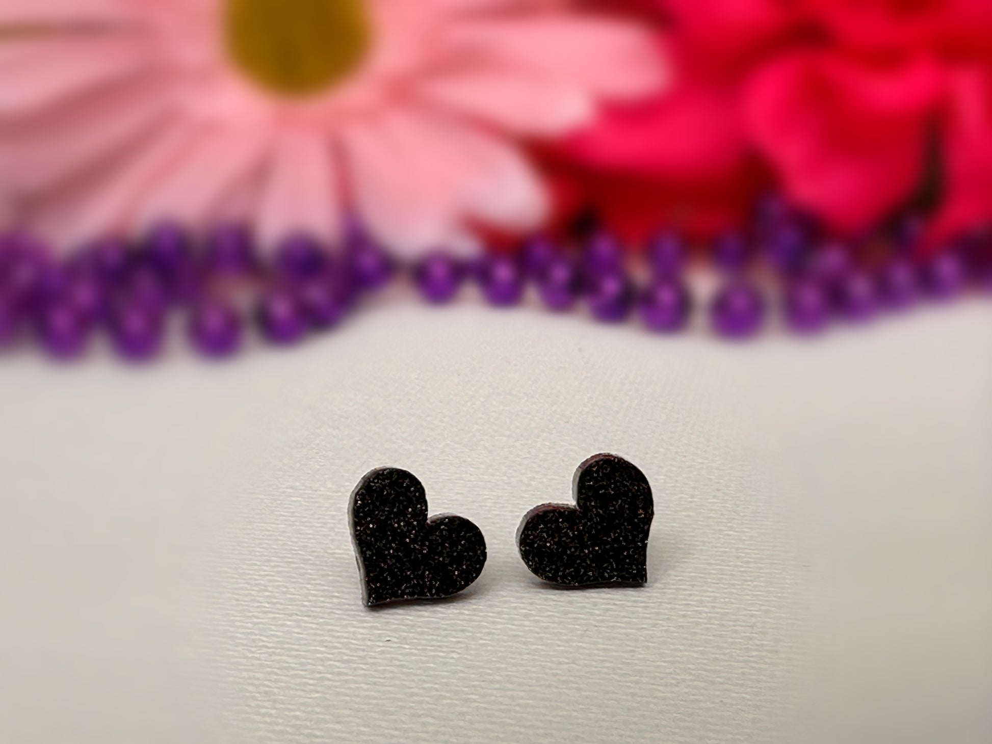 Black Glitter Heart Studs