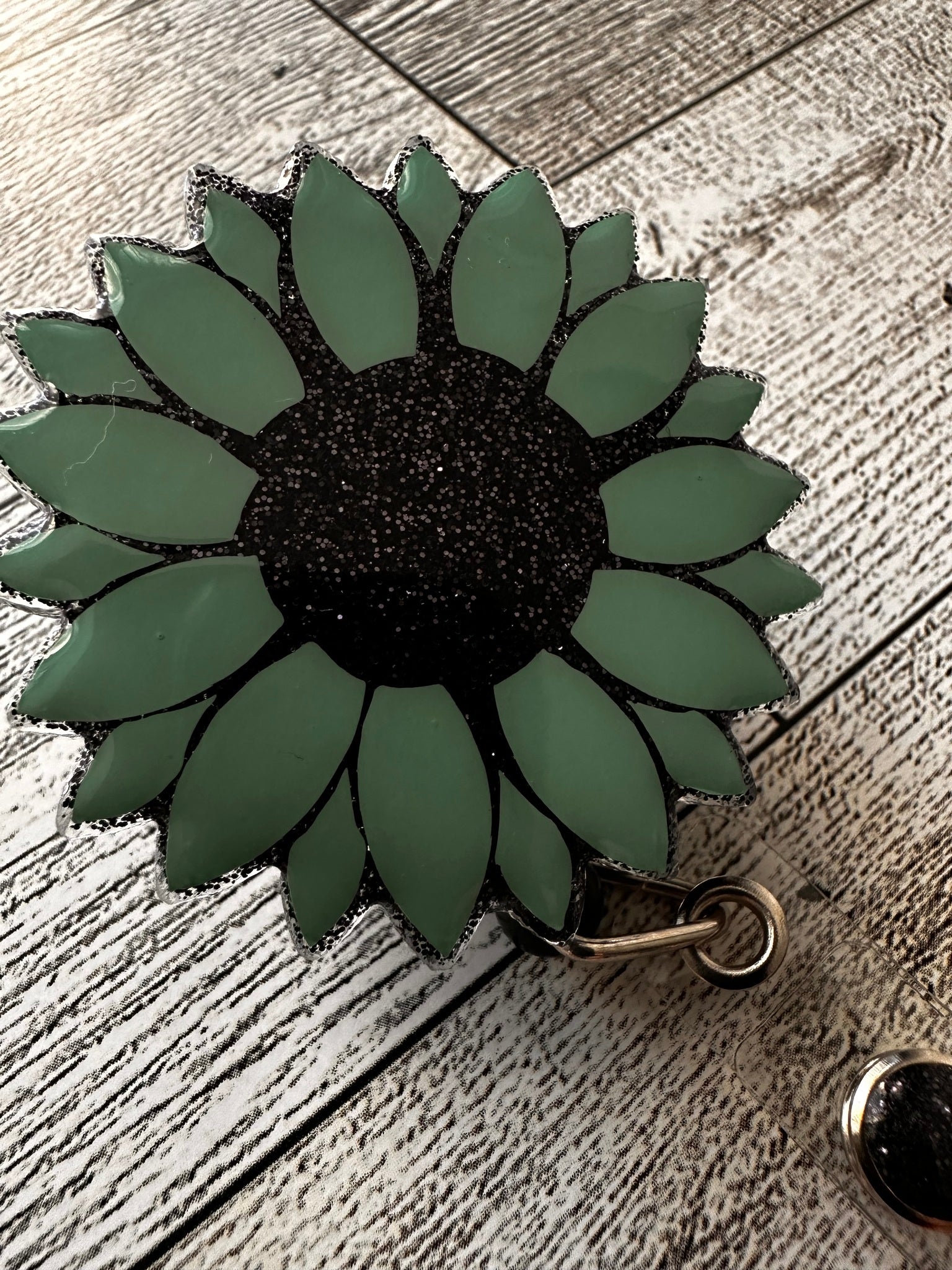 - Hand glittered and sealed with resin for added protection against wear and tear